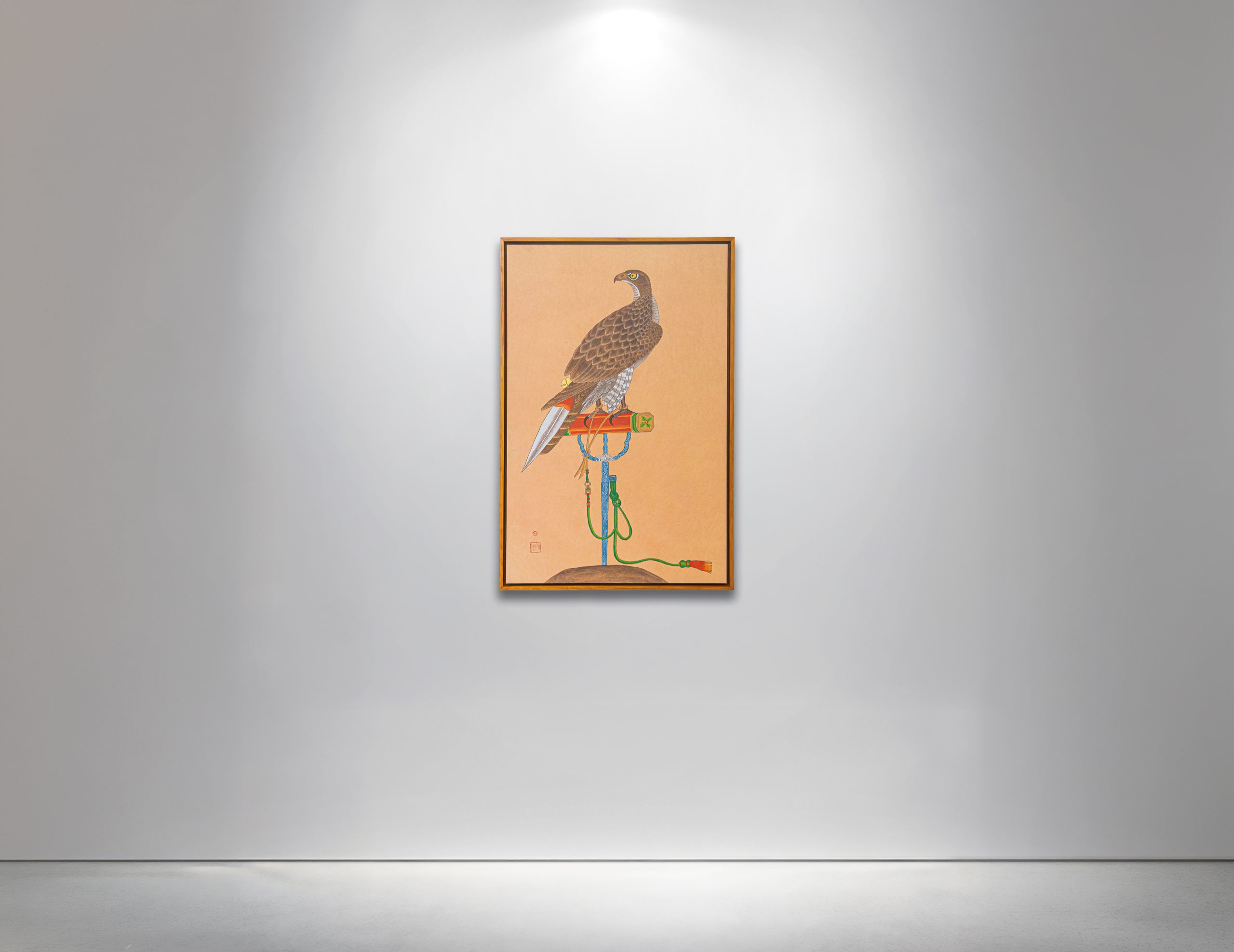 한국에서는 상징적인 이미지가 공간의 기운에 영향을 준다는 이야기가 합니다. 그런 의미에서 매 그림은 보호, 강인한, 분명한 방향을 상징하는 길상의 이미지로 감상될 수 있으며, 공간을 지켜주고 단단하고 집중된 기운을 더해주는 작품으로 받아들여질 수 있습니다.