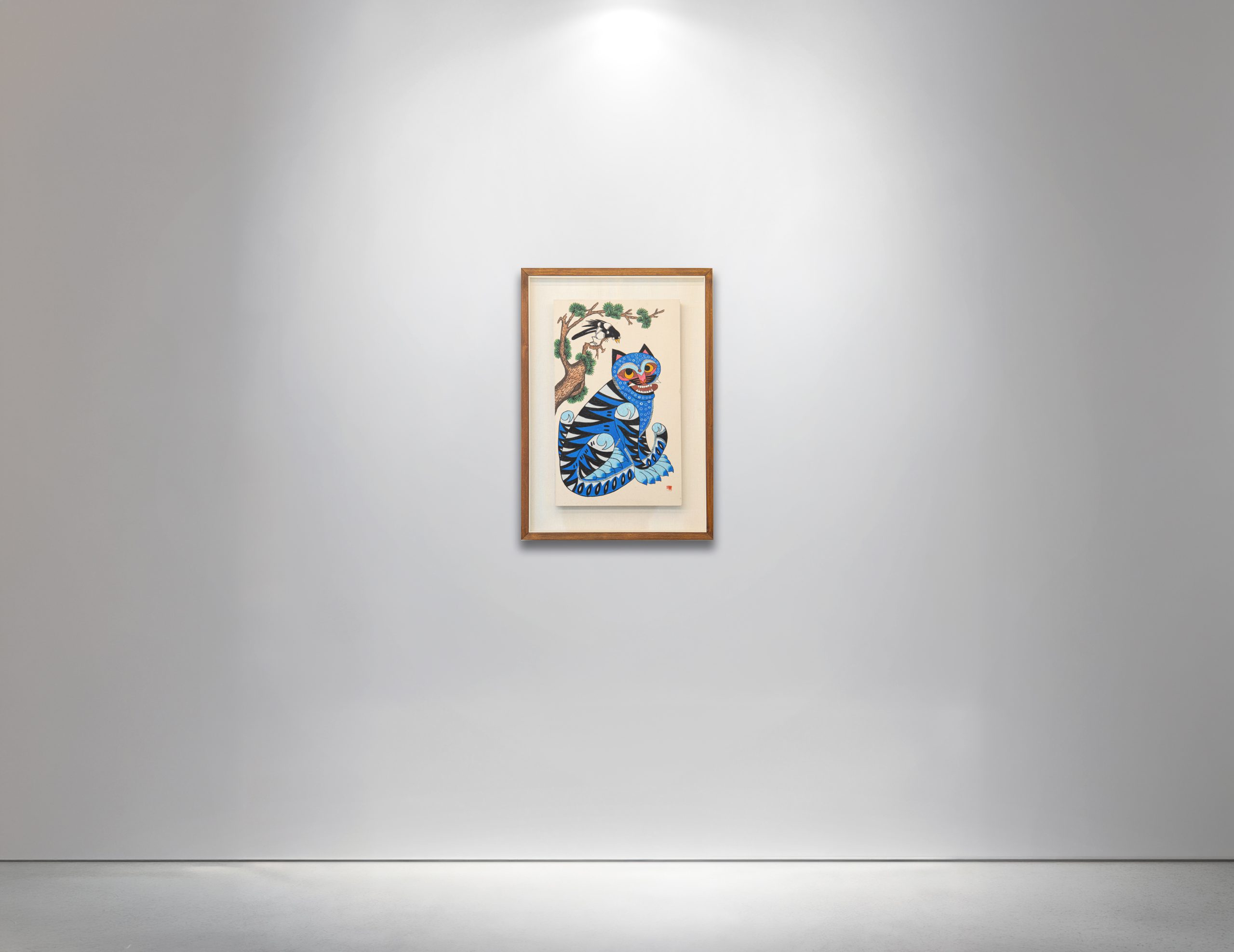 예술적인 아름다움을 넘어, 호작도 블루는 공간에 맑고 정돈된 존재감을 불러옵니다. 거실, 서재, 스튜디오, 또는 모던한 오피스에서 분위기를 밝히면서도 깊이와 차분함, 조용한 확신을 더해줍니다. 그런 의미에서 이 작품은 한국 전통에서 영감받은 동시대 작품일 뿐 아니라, 새로운 기운과 균형, 부드러운 보호의 에너지를 불러오는 길상의 이미지로도 감상될 수 있습니다.